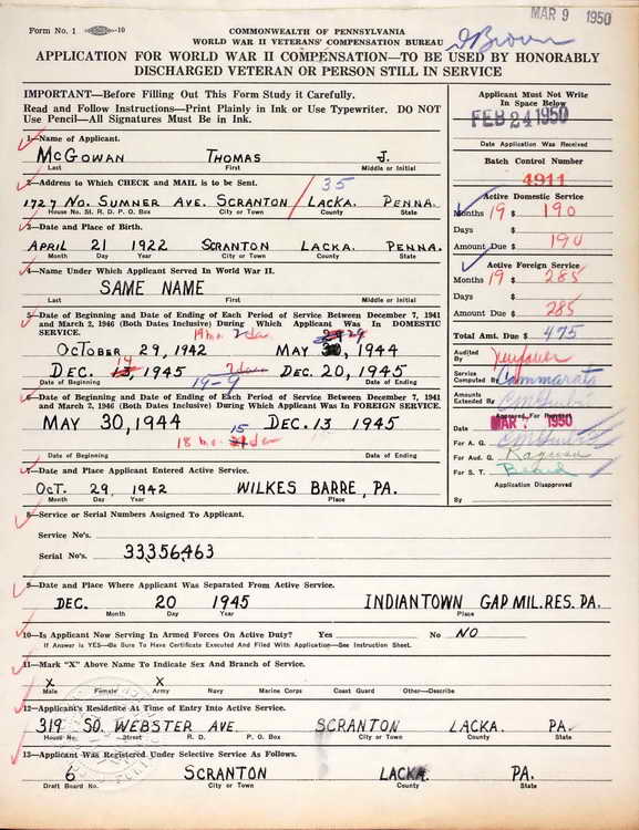 Pennsylvania WWII Veterans Bonus