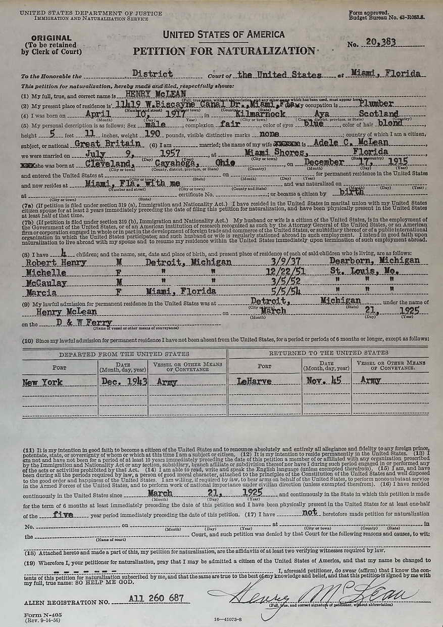 Henry McLean, age, 8, born Kilmarnock, Scotland, entered the U.S. from