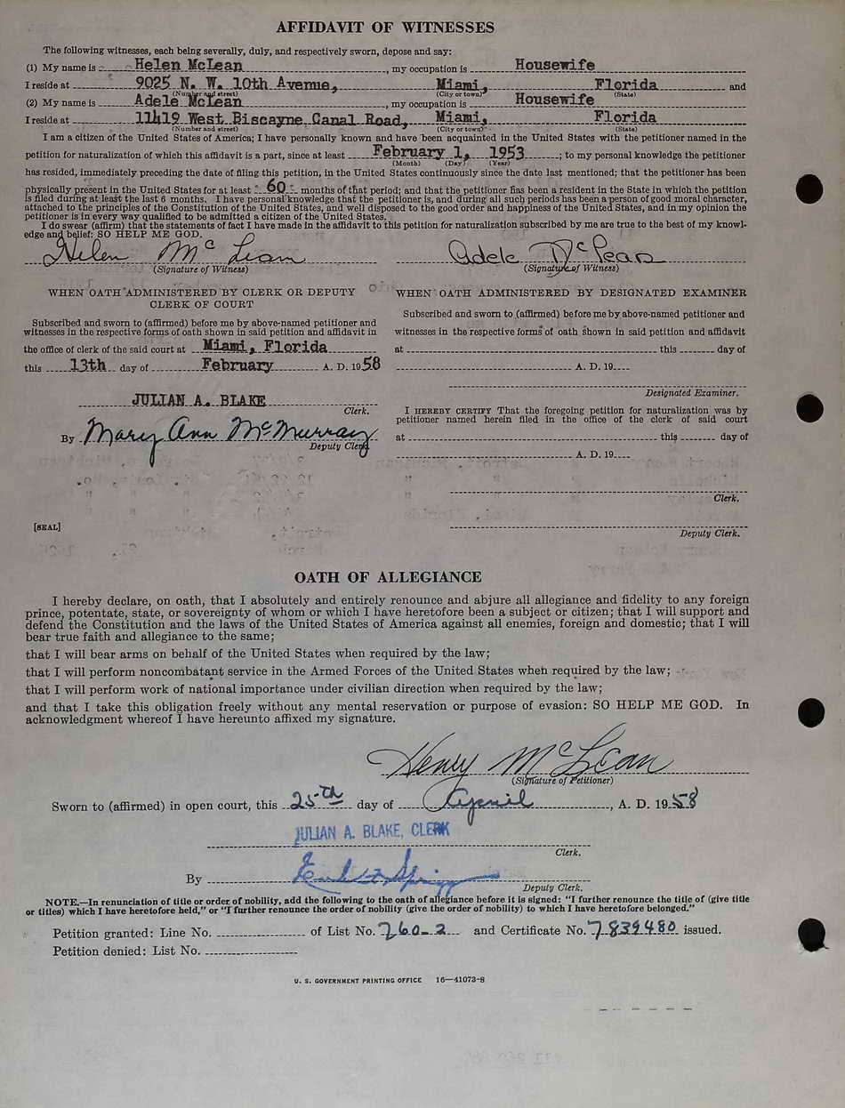 State Census, 1945 listed Henry's mother, now a naturalized citizen,