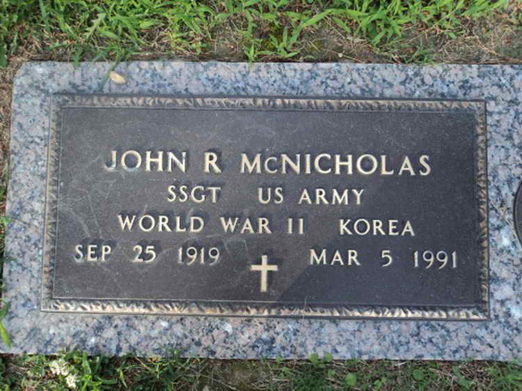 Grave marker for John R. McNicholas in Rosewood Memorial