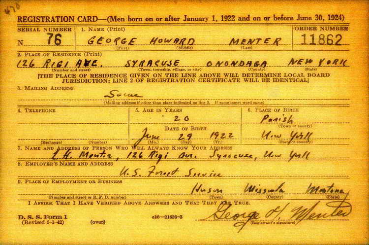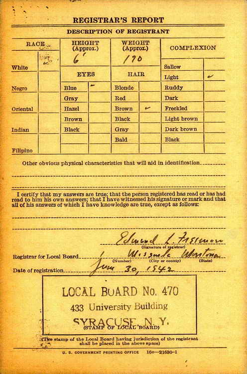 1942 and was inducted into the Army at Syracuse, NY on 12 October 1942 and