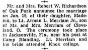 for marriage of Arman Merriam to Madelon Richardson. They were