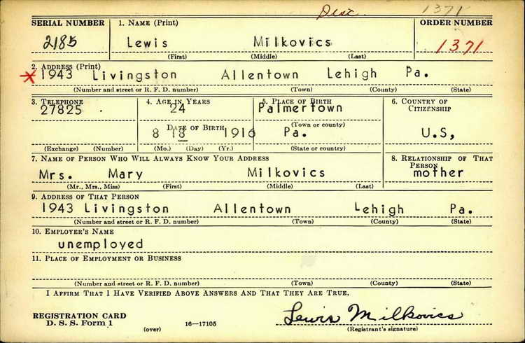 Born in Palmerton [PA], he was a son of the late Lewis and Mary (Lockner)