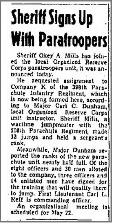 Sheriff Mills, a wartime jumpmaster with the 508th Parachute Regiment