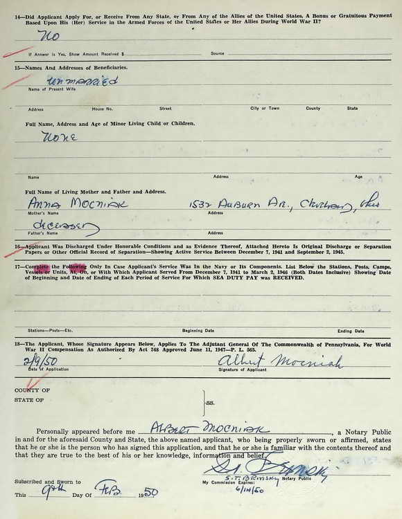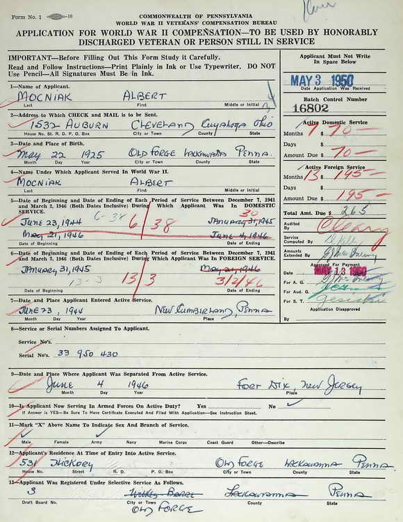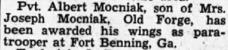 Times Leader, Wilkes Barre, PA on 30 June 1945 announcing that Albert