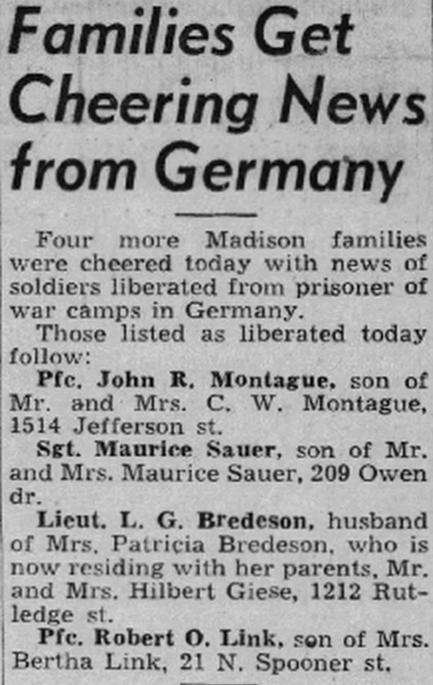 Four more Madison families were cheered today with news of soldiers liberated from prisoner of war camps in Germany.