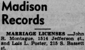 John R. Montague, 1514 Jefferson st., and Lois L. Poster, 215 S. Bassett st.