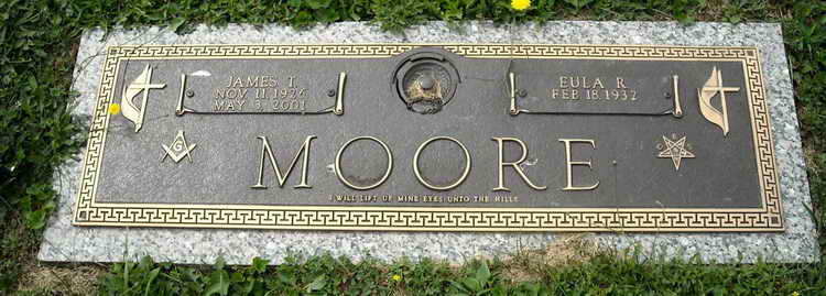 Grave marker for James T. Moore in the Rose Lawn Cemetery,