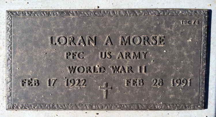 Grave marker for Loran A. Morse in Section 19c, Site 76 of