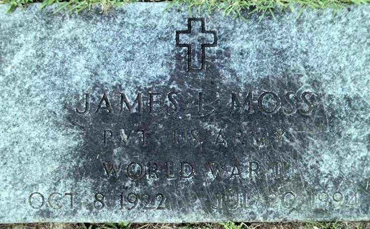 Grave marker for James L. Moss in Valley View Memorial