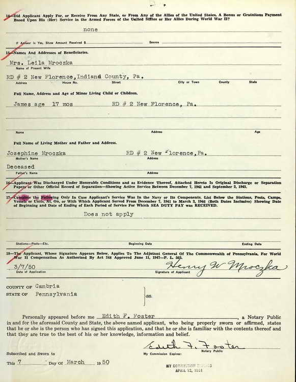 On 7 March 1950, Henry submitted this application for the Pennsylvania