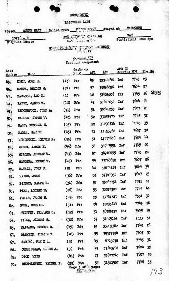 Pvt Mroczka departed for the ETO on 19 September 1944