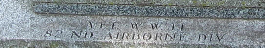 the inscription of "VET WW-II, 82ND AIRBORNE DIV." on the foundation of