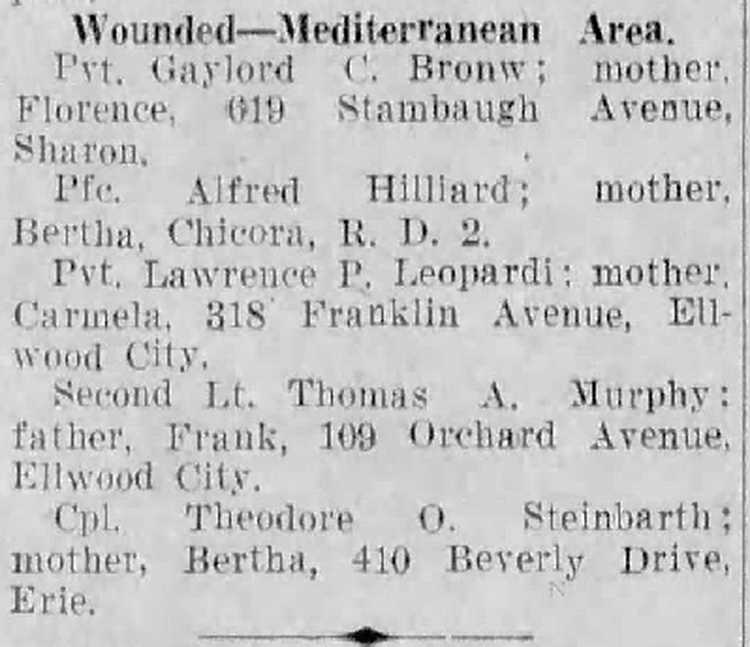wounded at Anzio. His family formerly resided in Ellwood City where