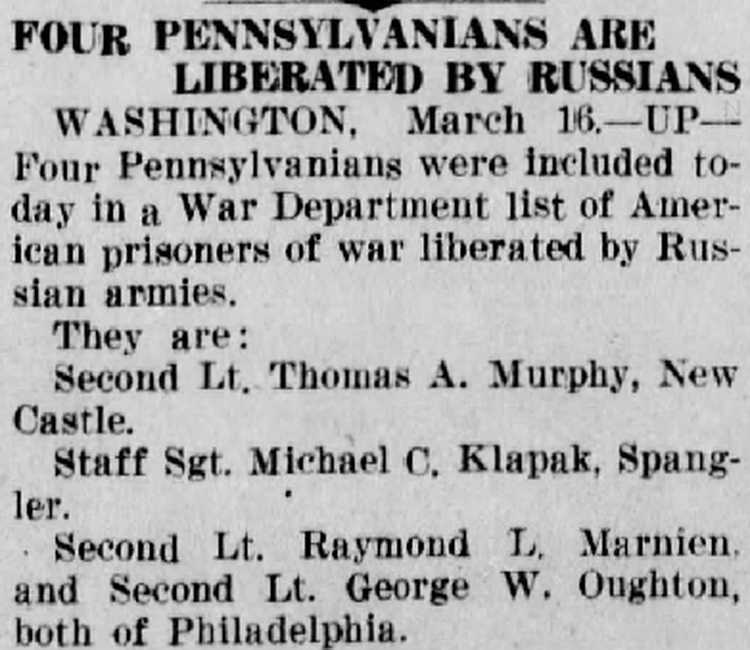 liberated by Russian armies. They are: Second Lt. Thomas A. Murphy, New