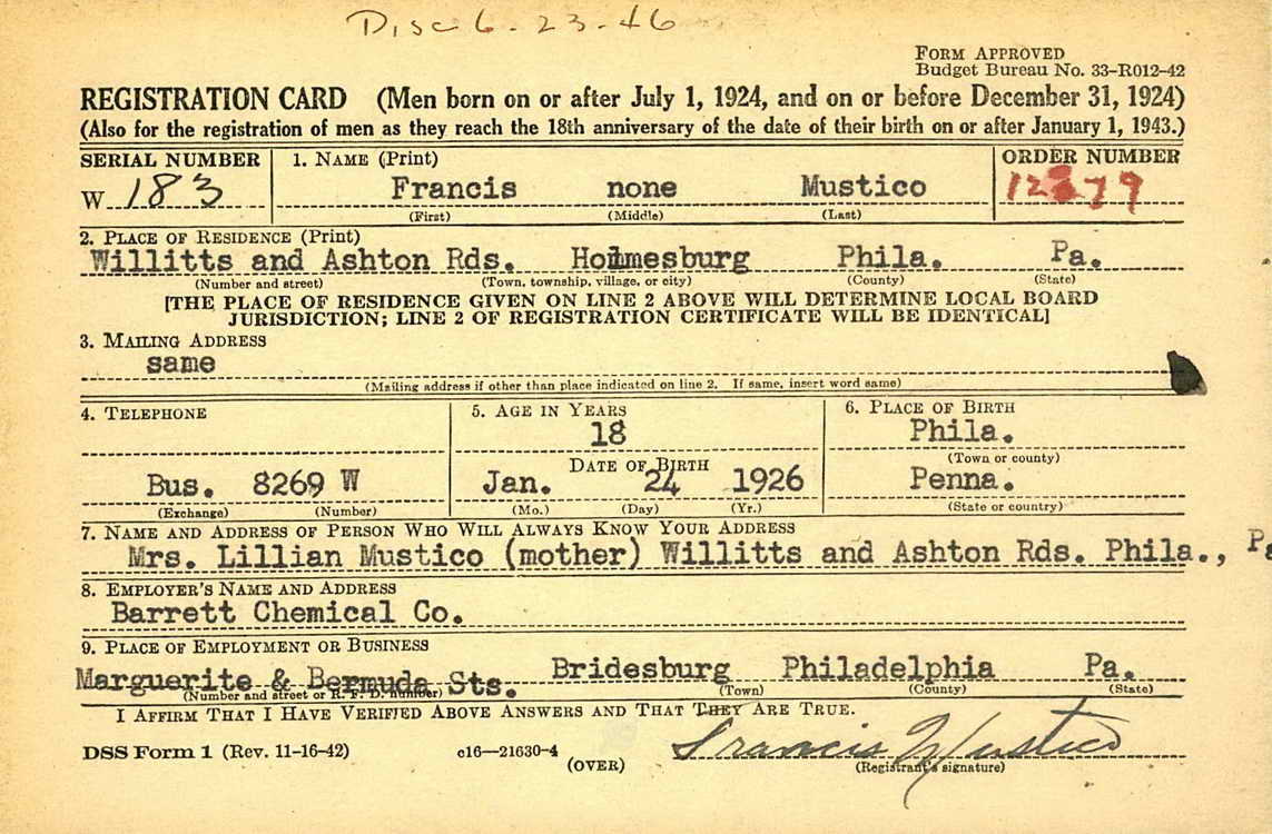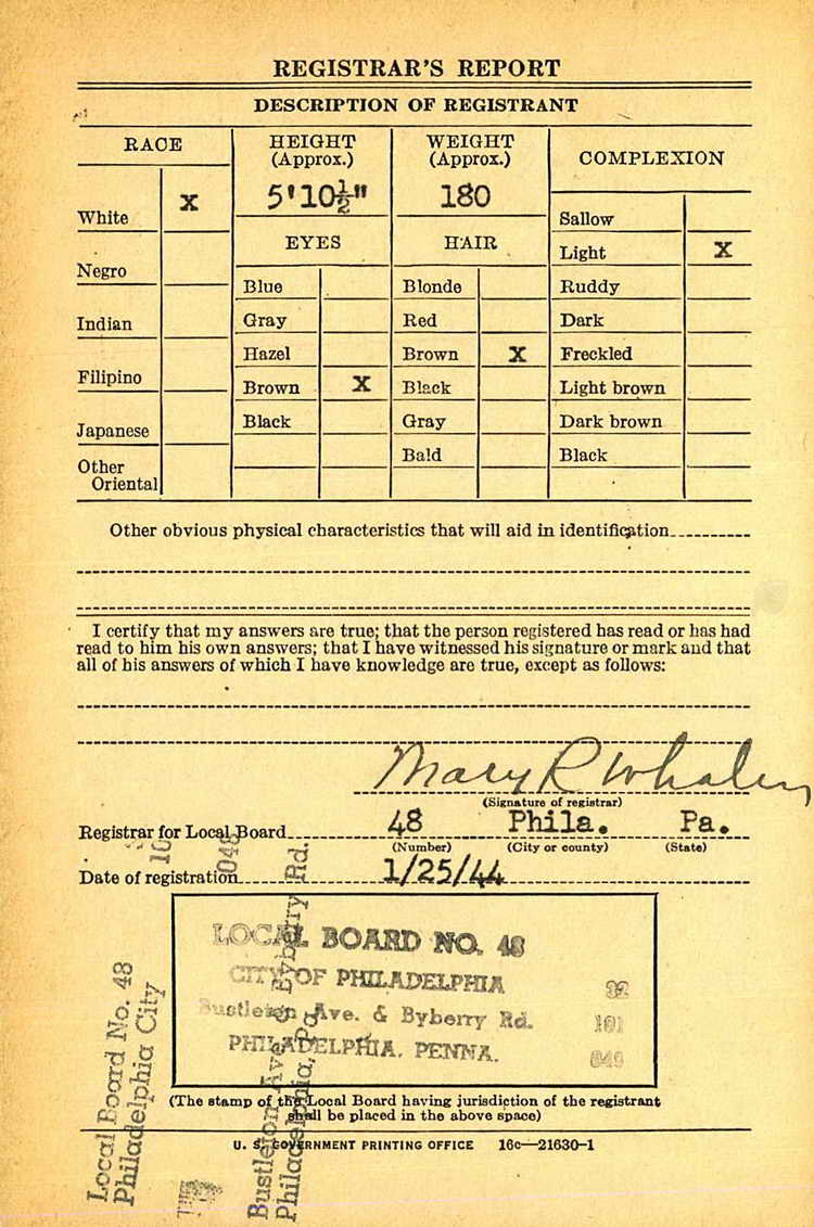 Philadelphia, PA on 25 January 1944 and was inducted into the Army at
