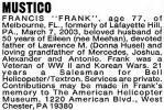 Helicopter/Textron. Services are private. Contributions may be made in Frank's memory to The American Helicopter Museum, 1220 American Blvd., West Chester, PA 19380.