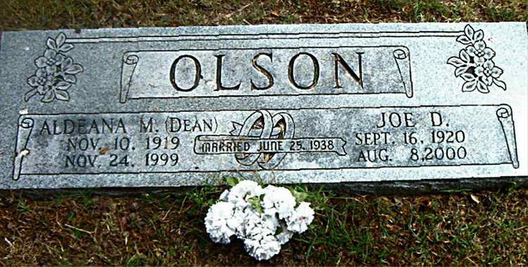 marker for Joe D. Olson and spouse in the Gass Cemetery, Omaha (Boone