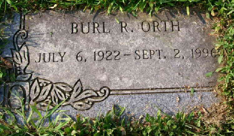 Grave marker for Burl R. Orth in the Memorial Burial Park,