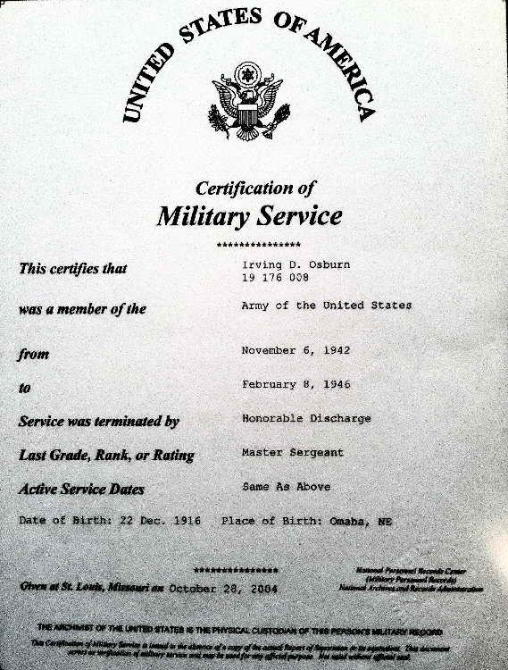 Sgt Osburn was honorably discharged from the National Guard on 28
