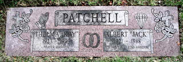 Grave marker for Albert and Thelma Patchell in Oak Hill Cemetery,