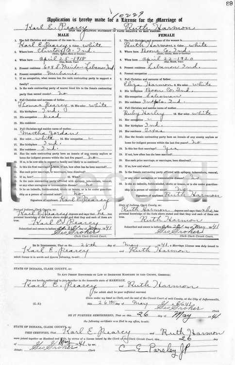 Karl married Ruth Harmon on 26 May 1941. The marriage ended