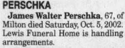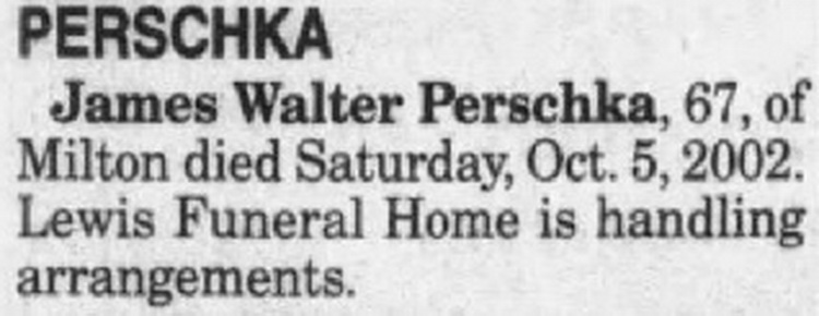 James Walter Perschka, 67, of Milton died