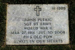 Grave marker for John Petric in Section 61, Site 1205 the Riverside