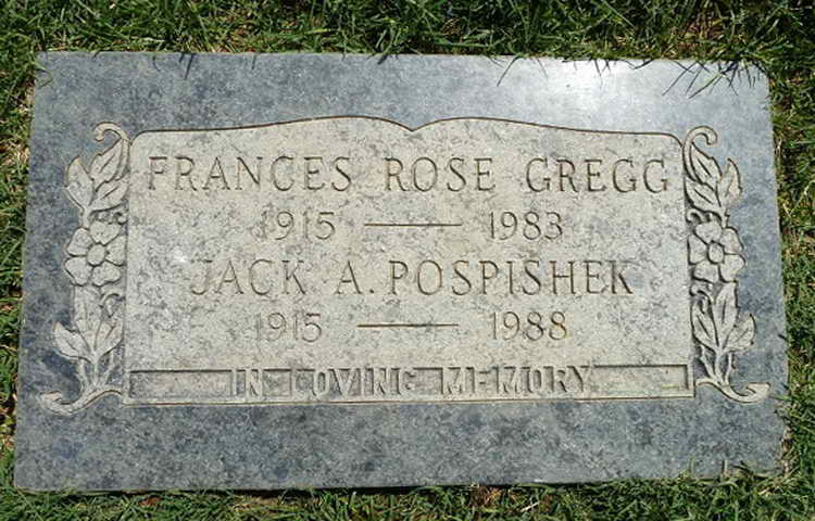 for Jack A. Pospishek in the Oak Hill Memorial Park, San Jose (Santa
