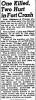 The accident victim was Edward Potym, 24, of 1047 W. 31st place, Chicago, who resided there with his mother. Driver of the machine was Norman D. Shugrue, 40, of 7127 Francisco street, Chicago, and also In the car was his wife, Mildred. Both of the Shugrues were Injured In the wreck and now are in the Fort Atkinson Memorial hospital.