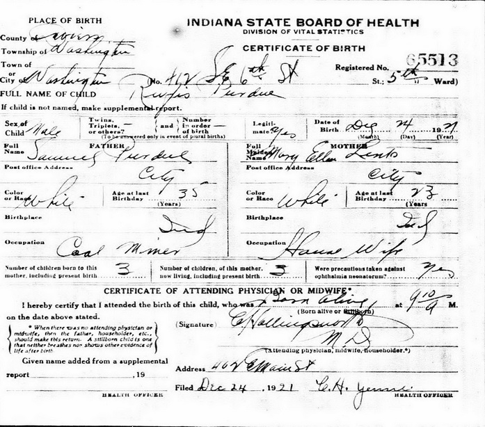 half sister, Phyllis Brock; and a half brother, Bert Purdue.