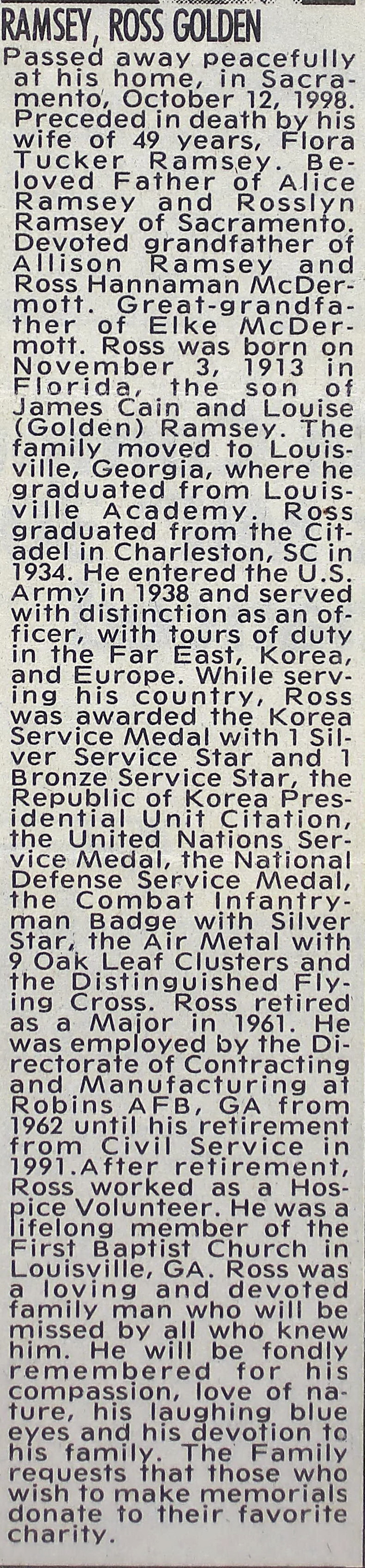 Ramsey. Beloved father of Alice Ramsey and Rosslyn Ramsey of