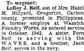 Works, he entered service in October, 1942. A sister, Fern Reif,