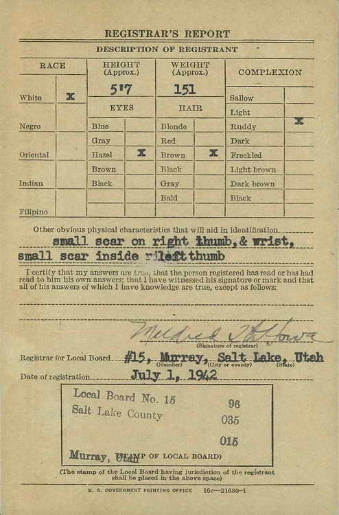 1942. He was inducted into the Army in Salt Lake City, UT on 4