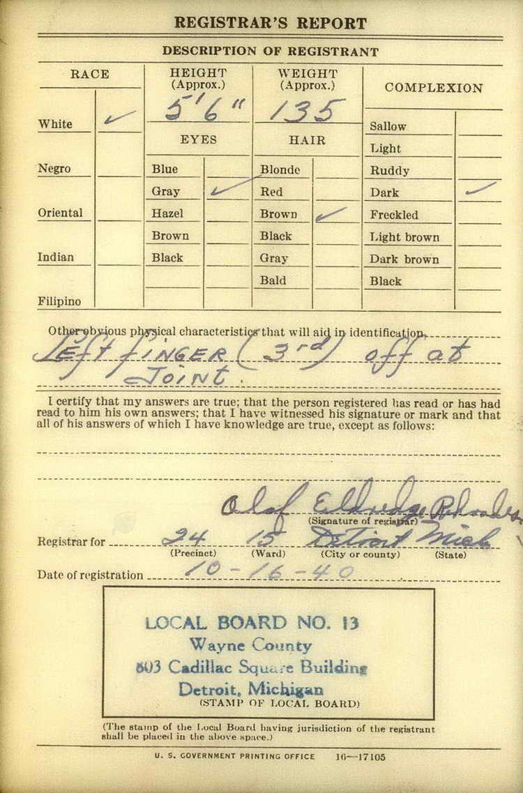 He married Mildred Pieszkowicz in Detroit, Michigan on 19 May 1947. |