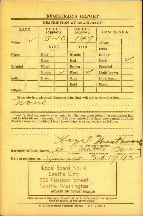 married Mary Lois Jensen in Seattle, WA on 21 June 1957, |