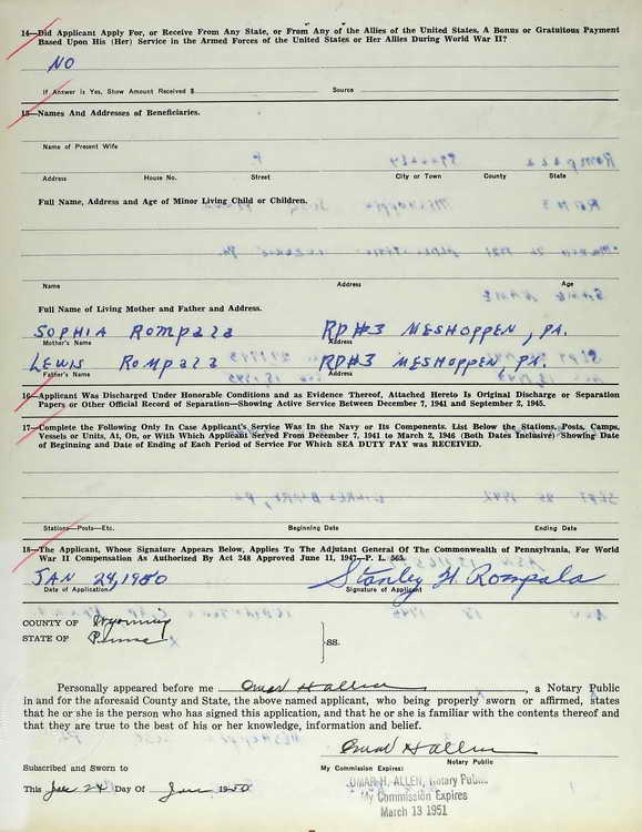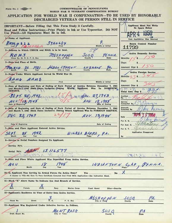 the Pennsylvania WWII Veterans bonus. He was credited with 15