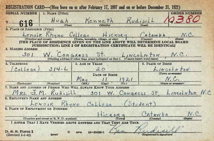 Rudisill indicates that he was attending the *Lenoir Rhyne College, Hickory