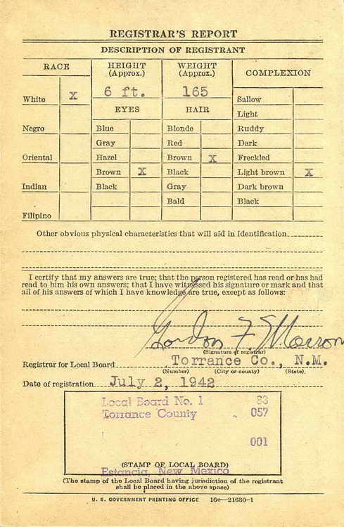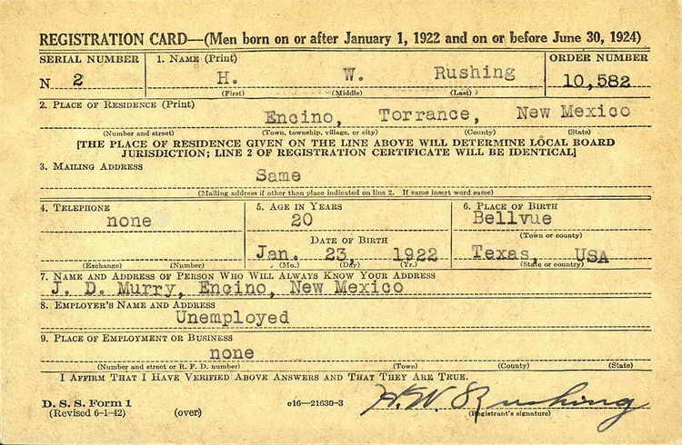 Encino NM on 2 July 1942 and was inducted into the Army on 11 November