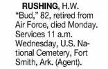 H.W. "Bud," 82, retired from Air Force, died Monday. Wednesday, U.S.