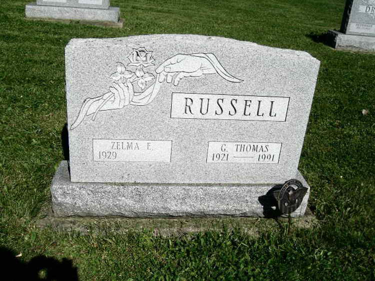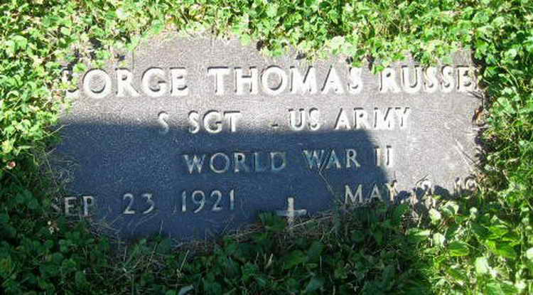 Grave markers for George T. Russell in Section D, Row 23 of