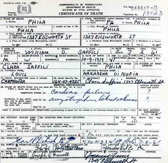 William died in July 1961 at age 41, in his home