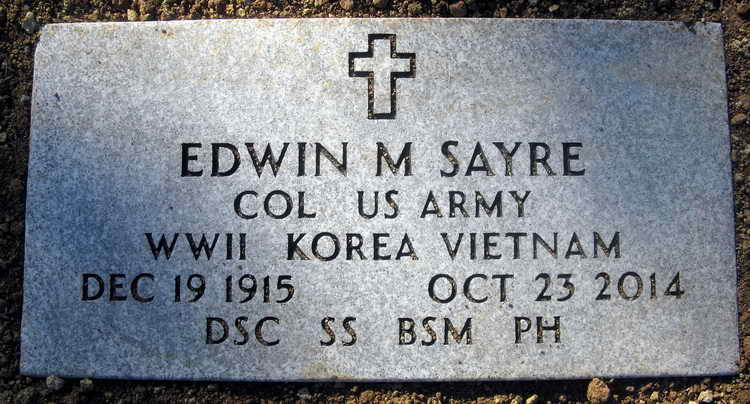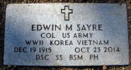 Colonel Edwin M. Sayre (Ret.), 98 died Thursday, October 23, 2014 at his residence.