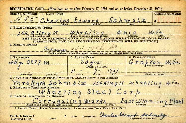 Wheeling (Ohio), West Virginia on 16 February 1942 and was inducted into the