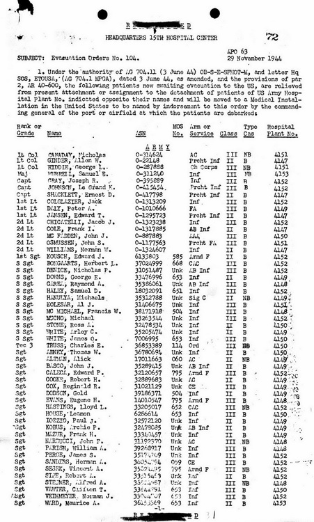 17 September 1944. As noted in the evacuation order, patients were