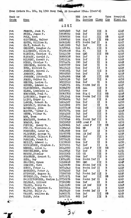 On 25 November 1944, Cpl Swartzendruber was transferred to the