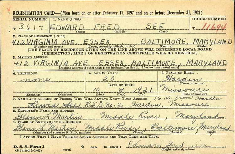 marker for Edward F. See in Fort. Benning Post Cemetery, Fort Benning, GA.