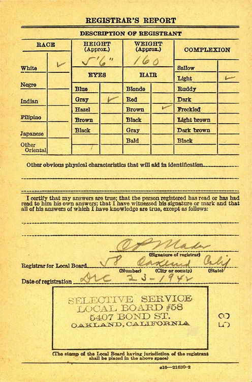 Norman registered for the draft in Oakland, CA on 23