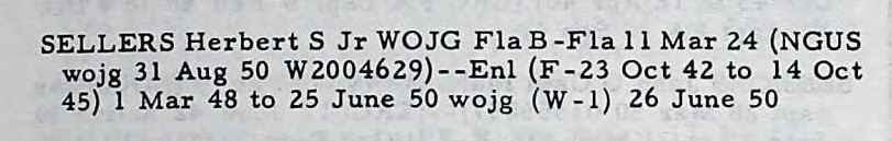 in 1953 WOJG Sellers was listed as an Assistant Motor Pool