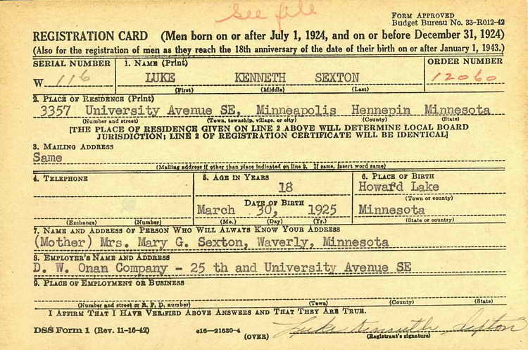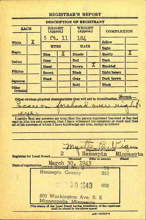 Minneapolis, MN on 30 June 1943. He was inducted into the Army